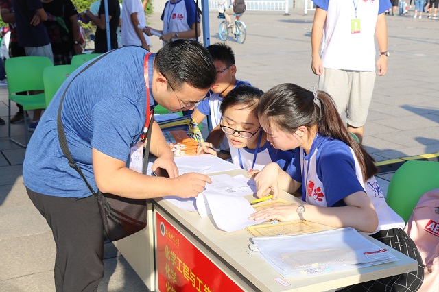 “细节决定成败”,“前进后出”的服务台设计畅通了报名通道;“多步合一”的材料袋设计确保了发放效率;“家长休息区”、“绿色通道”、“爱心送货”等设计提供了全面服务……化材人将严谨、细致的工作作风贯穿了迎新的每一个细节。
