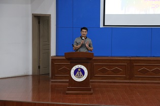 创新创业基金捐赠单位代表、马鞍山锐生工贸有限公司副总经理张立、何振铿,优秀院友、安徽工业大学教师徐其言,校团委书记梁燕,学院班子全体成员、系主任、优秀指导教师代表及全体辅导员应邀出席,2018级近400名同学参会聆听,院党委副书记余妍霞主持会议。