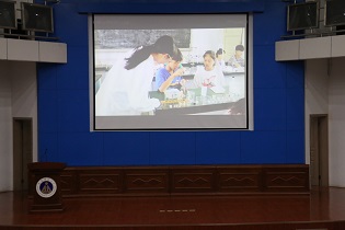 会议伊始,与会人员观看了学院优秀微视频《支教的第十六天》,视频从支教教师、受教学生两个视角讲述了实践中普通的一天,平凡中透漏出深藏的情感,让观众深有触动。5支优秀团队代表接着依次进行了实践汇报,短短的6分钟将一群人共同奋斗的难忘历程娓娓道来,每一个团队都做了大量的、详实的工作。其中,赴阜阳颍东科教扶贫主题实践团队、赴芜湖蚌埠“江淮科普学校志愿服务团队”与赴淮南市民族特色村科教扶贫主题实践团队的活动主要为支教,围绕趣味课堂、科普同行、关爱“蓝天儿童”等主题,青年志愿者们为孩子们带去了知识与温暖;赴阜阳、蚌埠“江淮环保行”主题实践团队以“明辨笃行谱写青春乐,携手同舟共筑环保情长”为主题内容进行环保宣教、调研,并形成了大量具体的实践成果;赴省内外专业能力提升主题实践团队于实践期间前往马鞍山安徽锐生工贸有限公司进行实地调研,形成了专业性较强的调研成果。各团队汇报主题明确,逻辑清晰,内容充实,一张张生动的照片、一个个真实的数据、一本本实践日志讲述着青年志愿者们点滴的成长和收获。随后的“实践心里话”环节,田小雨等同学在背景视频的音乐声中,用质朴的语言分享了“七月烈阳,梦里乌江”、“愿你温暖前行”等实践故事,为现场观众带来了一段段温暖人心的“旅程体验”。