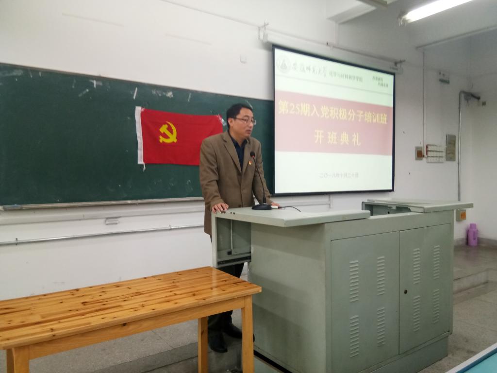 典礼在庄严肃穆的国歌声中启动。班主任陶勇宣布了班委任命事宜及班级管理章程。包括班级小组制度,班委的职责要求及党课学习期间“请假制度”“思想总结”等各项要求。指导老师闫蒙钢教授解读了党校学习安排。他指出,要积极落实“集中授课,分散实践”的学习要求,开展形式多样的实践活动,充分践行“理论联系实际”的指导思想。2017级材化专业陶宇航同学代表培训学员发言,他从“共产党员的责任”“党的领导地位”“大学生的担当义务”等三方面谈起,呼吁同学们要从细节中不断完善自我,努力向优秀共产党员看齐,彰显青年大学生的风发意气与赤诚热血。汪俊武在开班典礼中从思想、学习、纪律三方面切入,提出严格要求,鼓励全体学员要珍视此次系统的学习机会,争取早日加入中国共产党。