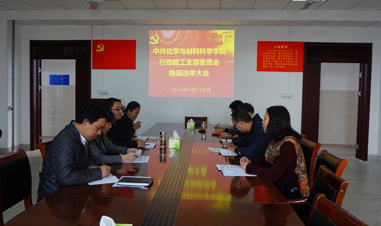 张年荣)10月23日下午行政教工党支部召开支部委员会换届选举大会,会议由支部书记苏桂琴主持,全体党员参加会议。
