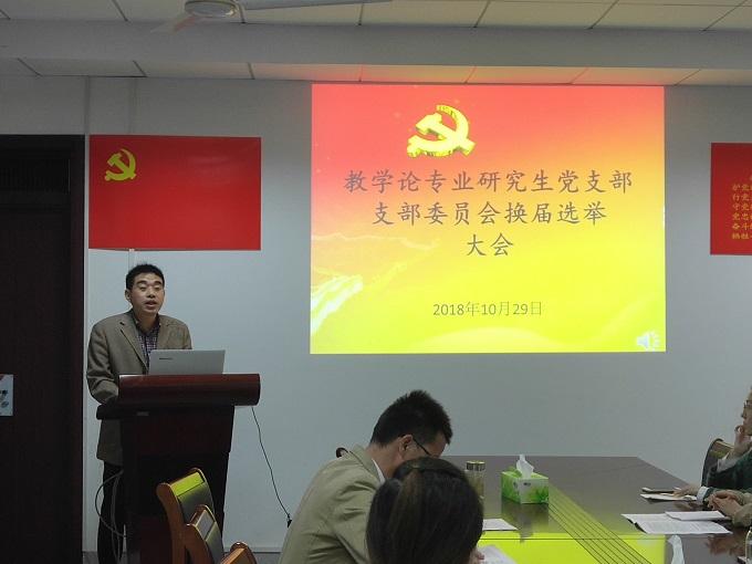 李小三代表党支部向大会作了工作报告,总结了上一届支部的建设情况和活动开展情况,分析了工作中存在的问题和不足,并有提出了相应的完善和解决措施。大会宣读和通过了换届大会选举办法,通过了信欣同志为监票人,李小三、殳晓玥同志为计票人,并介绍了换届选举的候选人情况,正式投票选举环节随之开始。统计工作结束后,李小三宣读了本次选举结果报告单,李萧文、沙莎、林琳、曹靖雯4名同志当选为教学论专业研究生党支部新一届支部委员会委员。支部换届选举大会结束后,新一届支部委员会召开第一次会议,进行了支部内部职责分工,让各委员更加明确自己的责任,以便更好地为广大学生群众起模范带头作用。