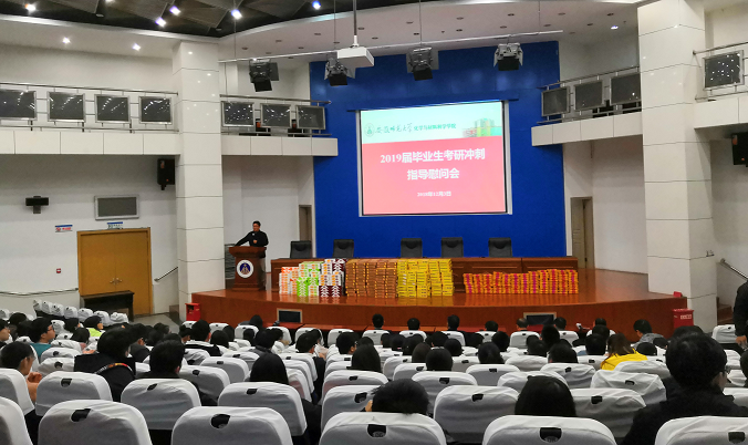 组织了2019届毕业生考研冲刺指导慰问会。学院全体党政班子成员、系主任、毕业班辅导员以及2019届考研学子参加了此次大会。会议由辅导员蒋建伟主持。