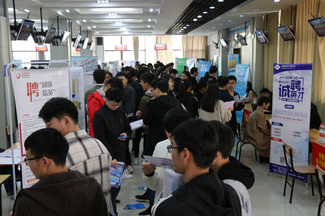 2019年春季化学化工类人才双选会在大学生活动中心二楼招聘大厅拉开帷幕。本次活动吸引了省内外近90家用人单位齐聚校园,为化学化工类、电子自动化类等专业毕业生提供了1185个就业岗位,双选会现场气氛热烈、秩序井然。