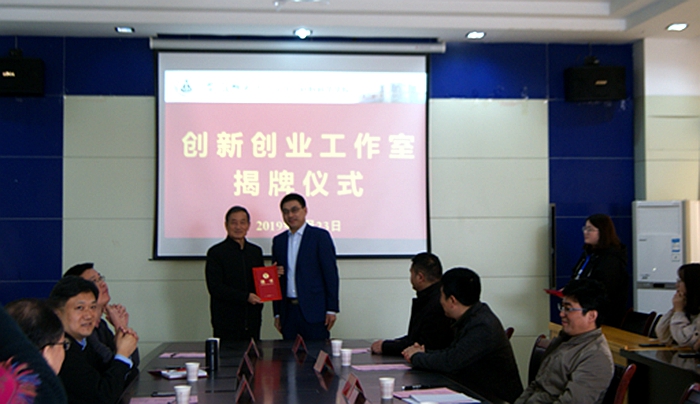建立“双创”工作室的目标和意义。随后,与会代表共同为“双创”工作室进行揭牌,周端明代表学校向被聘请为工作室的4位“首席专家”颁发聘书。