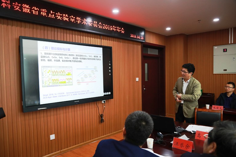 学术委员会主任李亚栋院士主持了学术年会。高峰院长作分子基材料安徽省重点实验室2018年度工作进展报告,围绕重点实验室研究方向汇报分子基材料实验室2018年在队伍建设、科学研究、人才培养、实验室运行管理情况。夏云生教授、柴卓教授、毛俊杰教授分别作了研究进展报告。委员们充分肯定了实验室一年来来在各方面取得的成绩,认为实验室建设定位清晰,整体实力明显提升,研究特色较突出,建设举措有力,发展思路可行。建议学校加大对实验室的投入,加强人才引进力度,进一步凝练研究方向,坚持特色研究和原创性研究,以期产出更多高显示度成果。