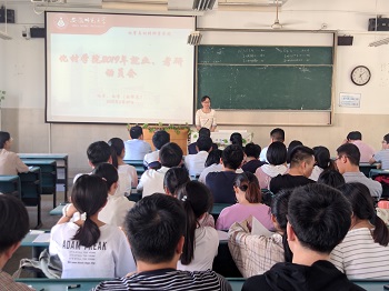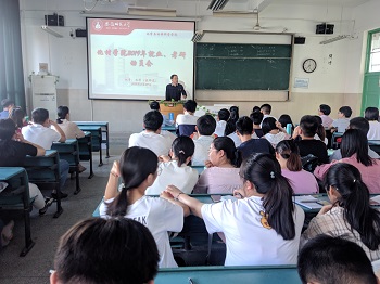 于2019年5月29日下午17:00在教学楼2020403、财务处二楼报告厅分理、工科举行2020届毕业生考研、就业动员会。学院全体班子成员、系主任、2016级全体辅导员参与动员,2016级全体同学参加,会议分别由院党委副书记余妍霞、院团委书记王国良主持。
