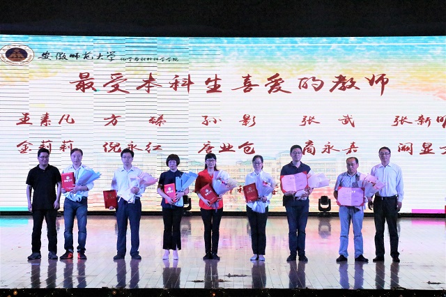 三尺讲台,三寸粉笔,孜孜不倦,育人无悔。由毕业生评选出的第八届“最受本科生喜爱的教师”登上舞台、走进视频,为毕业生送上深深的祝福,毕业生代表送上鲜花感念师恩,院党委书记汪俊武、院长高峰为获奖教师颁奖并合影留念。