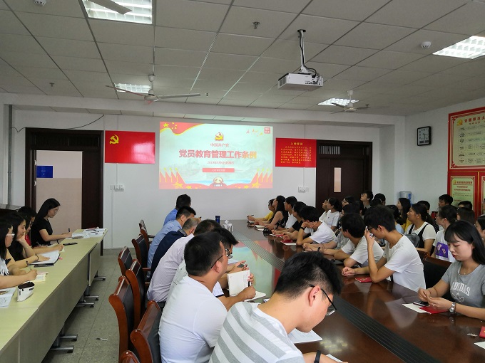 会议最后,余妍霞做了一个主题党课讲座,逐条详细解读了《中国共产党党员教育管理工作条例》。《条例》共10章46条,计7200余字, 指出党员教育管理是党的建设基础性经常性工作。党的十八大以来,以习近平同志为核心的党中央高度重视加强党员教育管理工作,推动形成全党从严从实抓党员教育管理的良好态势。《条例》以习近平新时代中国特色社会主义思想为指导,以党章为根本遵循,总结吸收实践创新成果,对党员教育管理的内容、方式、程序等作出规范,是新时代党员教育管理工作的基本遵循。