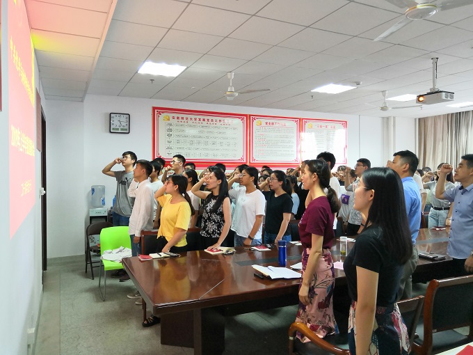 在礼勤楼707室党员活动室召开庆祝建党98周年主题党日活动。学院党委委员、支部书记以及2019年上半年新发展的党员参加了会议,会议由学院党委副书记余妍霞主持。