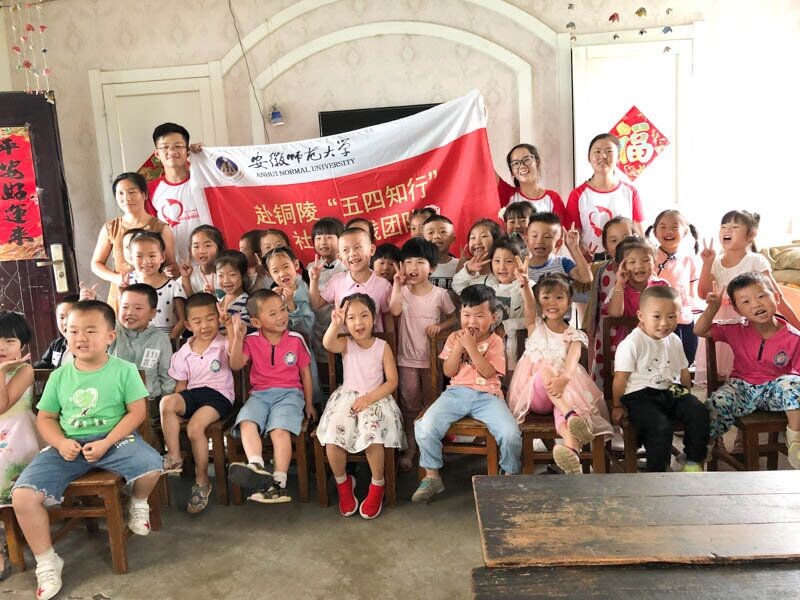 赴铜陵“五四知行”暑期社会实践团队来到了铜陵市天门镇新华村新华幼儿园,为孩子们带来了一次别开生面的趣味教学活动。