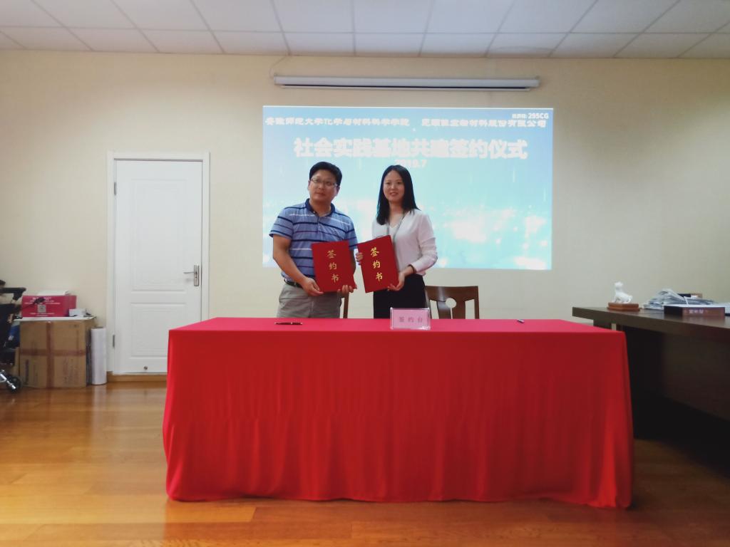 挂牌合作,校企谋双赢。在袁经理和张小俊院长的相互介绍下,双方签订基地共建协议书,张小俊院长与王正华老师为佳宏新材料授予“大学生社会实践基地”的铜牌,展示出包子漫画