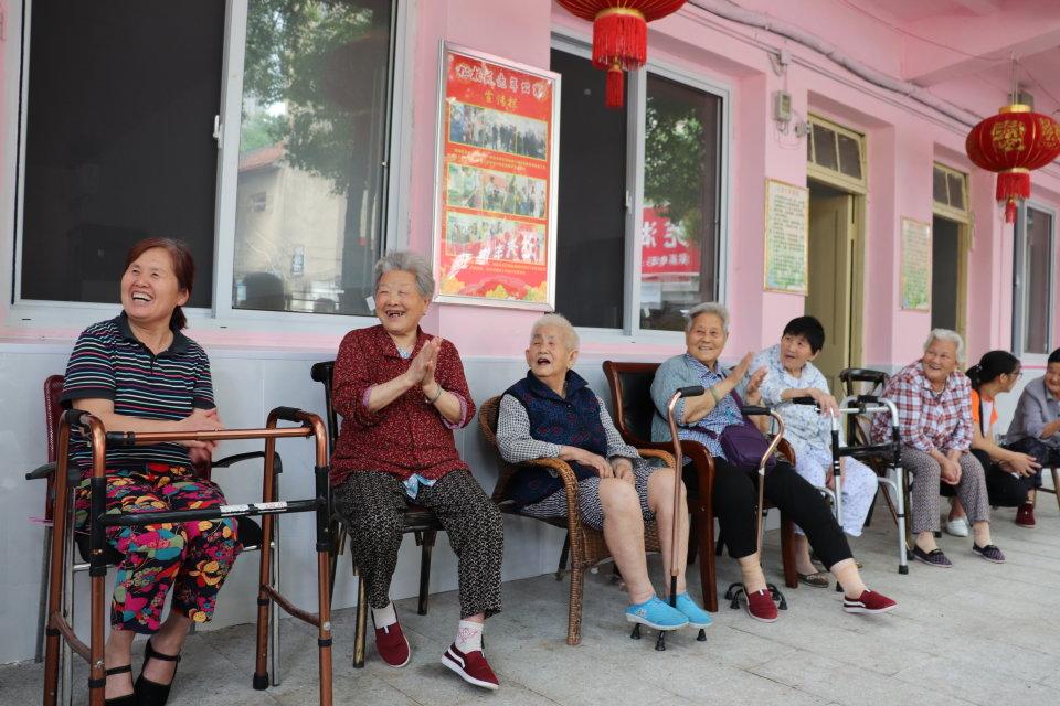 (图为老年公寓的老人们看到表演后喜笑颜开)
