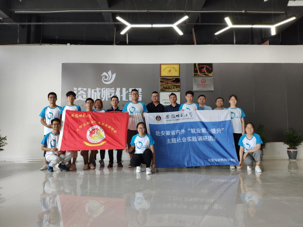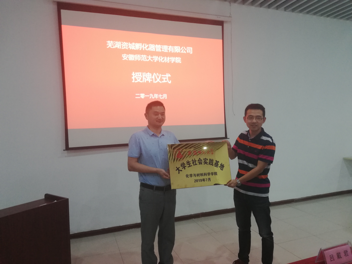 赴安徽省内外“就业能力提升”主题调研团队于7月15日前往芜湖资城孵化管理有限公司进行挂牌仪式,总经理吕戴君先生以及韦鸿先生热情接待了各位老师和同学们。