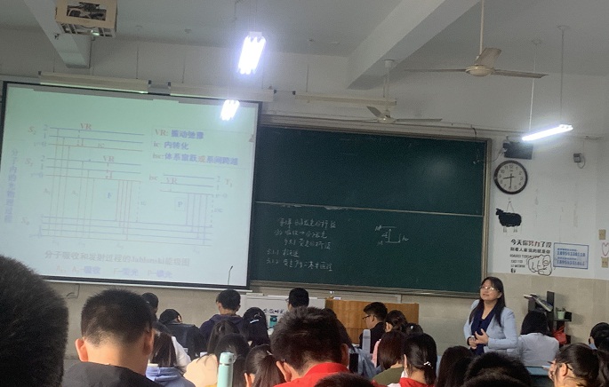 2019年10月9日上午第一节课,张明翠老师在2010302教室成功开展分析化学公开课。为2018级化学师范专业学生讲授《分子发光分析法》课程,教学副院长张小俊老师、校督导团老师、院督导组老师及学院部分老师共同聆听了此次课程。