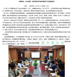 认真学习贯彻习近平总书记关于教师队伍建设的重要论述,将师德师风教育融入“不忘初心、牢记使命”主题教育之中,以加强青年教师思想政治工作为发力点,推进主题教育落细落实。