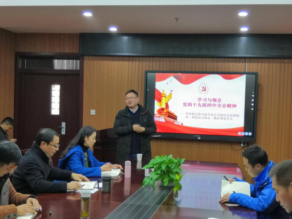 邀请了校宣讲团专家、历社学院安建增副教授为学院全体教职工做了一场题为“坚持和完善共建共治共享的社会治理制度,保持社会稳定、维护国家安全”的学习与领会十九届四中全会精神专家辅导报告,会议由学院党委书记汪俊武主持。