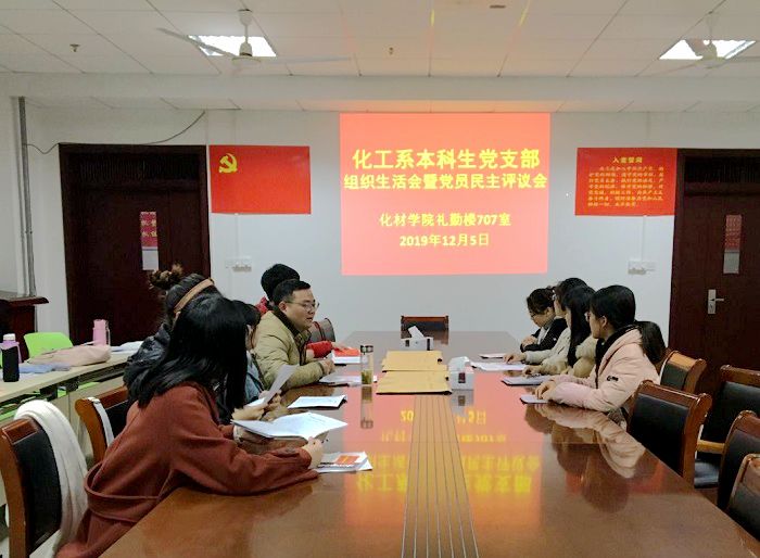 本网讯(化工系本科生党支部 周 洁)12月5日晚,化工系本科生党支部召开了党员发展大会、组织生活会暨党员民主评议会。学院党委副书记余妍霞出席并作指导讲话,全体支部党员及发展对象参加会议,会议由支部书记程紫丹主持。
