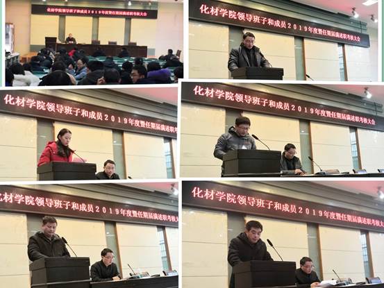 首先,汪俊武代表班子从2019年度主要工作完成情况、任期内重要工作业绩、任期目标完成情况等三个方面总结了本届班子在党建和思政工作、师资队伍建设、本科教学工作、学科(学位点)建设、科学研究与社会服务、学生工作、内部管理与服务保障方面所做的工作和取得的成绩,指出成绩的取得是全院教职工共同努力的结果,并代表本届班子感谢广大师生对学院工作的大力支持。接着各位领导班子成员分别做了述职报告。
