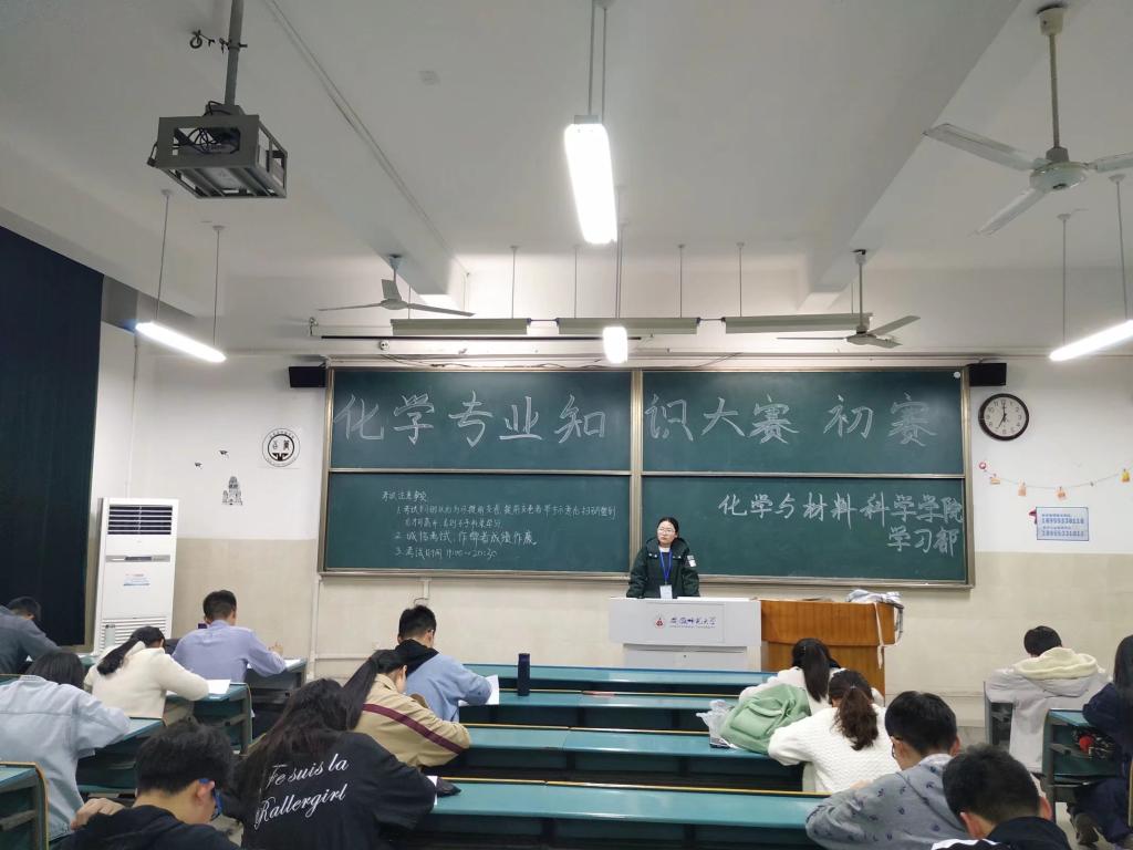 学生会成功举行“学术化材——化学知识专业大赛”。大赛以笔试的方式在百余名参赛选手中选出了八名成绩最优者进入决赛,决赛以两两抢答的方式进行,选手按照抽签顺序决定各自相应的对手,通过抢答取得答题权。比赛不仅考查专业知识,还考验选手的反应能力与应变能力。比赛中的试题涉及面广泛,包含无机化学、有机化学、分析化学以及物理化学的专业知识和部分趣味化学常识,各位参赛选手将自己丰富的知识储备在短时间内发挥到极致。