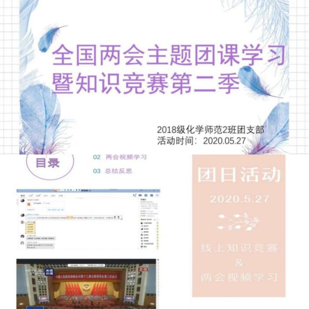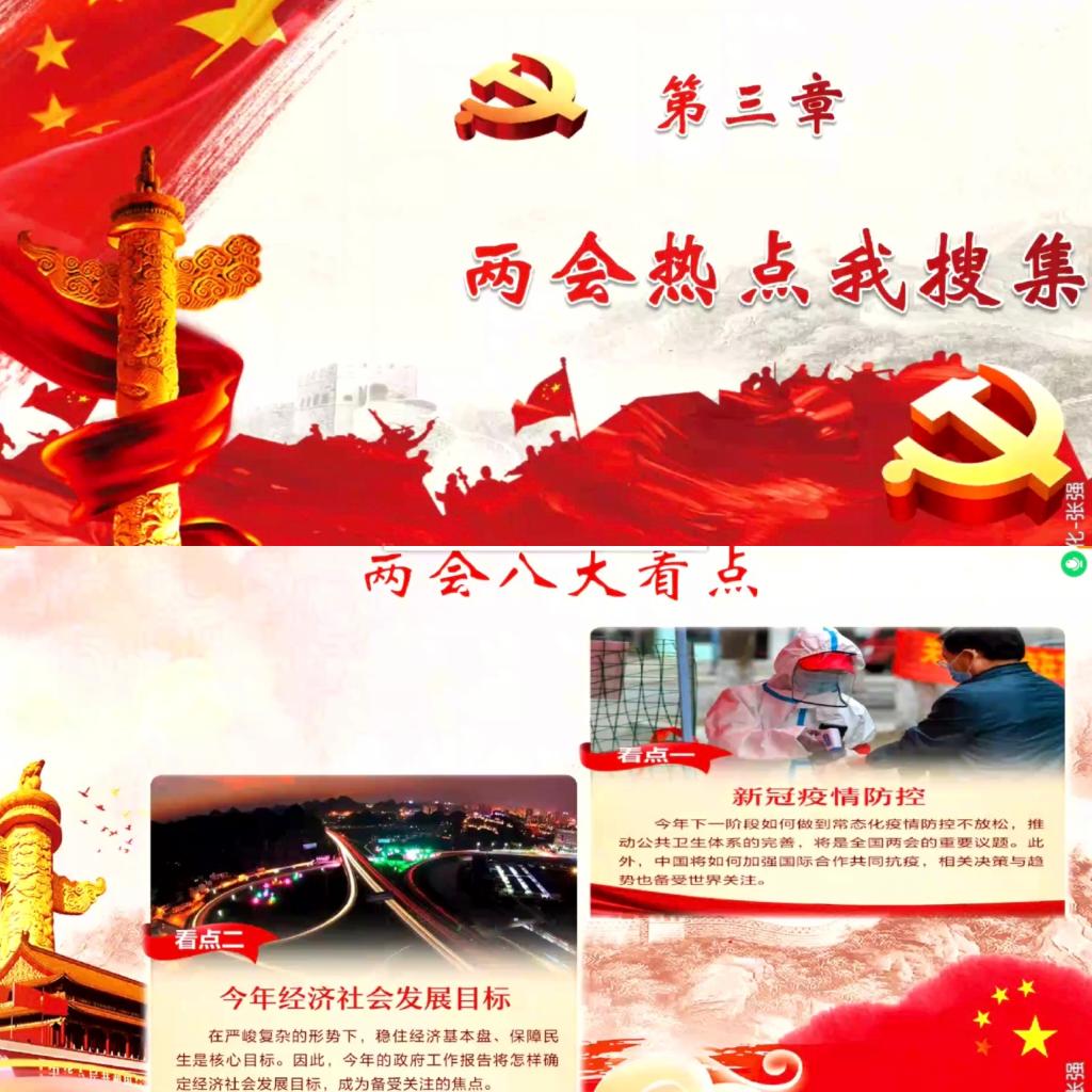 在学院团委的组织安排下,各团支部以主题团课、知识竞赛、在线研讨、专题思政课等多样化的学习方式,从不同的角度开展深入学习。有的班级聚焦两会热点和焦点话语,“坚持把人民生命安全和身体健康放在第一位”,这样的话语就像一股暖流深入学生心中;稳就业保民生,让青年大学生信心倍增,干劲更足;面对突出其来的新冠疫情,中国的防控举措取得了重要战略成果,青年大学生们深切感受到中国特色社会主义的制度优势。有的班级组织同学收听收看开闭幕式,帮助同学们全面了解两会精神内涵;有的班级以知识竞赛的方式梳理两会学习重点,感受中国人民的英雄壮举和中国特色社会主义的伟大力量。
