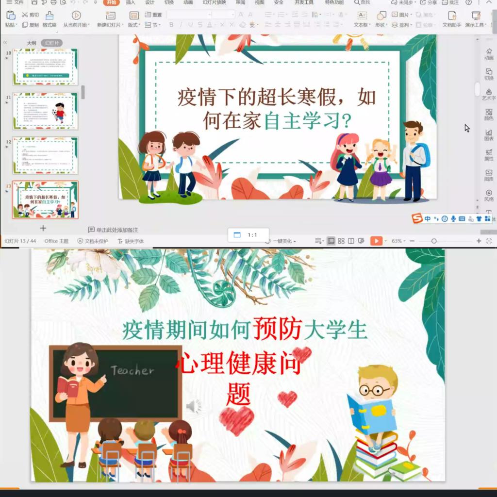 开启“导员驿站”服务,为学生寄送所需学习材料,也给远方的学生送去导员最真诚的关心。了解到2019级转专业的同学们可能会有学习上的困难,辅导员召开了转专业同学的线上会,给他们找学习的小伙伴,一对一帮扶;大类招生的同学们,对未来分流不明确,学委组织邀请学长学姐答疑解惑;各专业老师关注考研调剂信息,用行动助力学生求学……每一段都是别样的“happy hour”,只为学生心理健康提供坚实的保障。