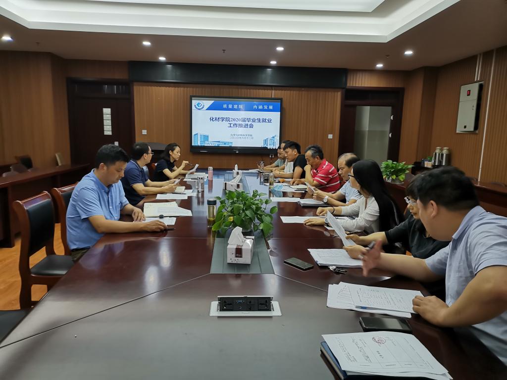 召开2020届毕业生就业工作推进会,学院党委书记汪俊武、副书记余妍霞、副院长周双六和各系主任、辅导员参加推进会。