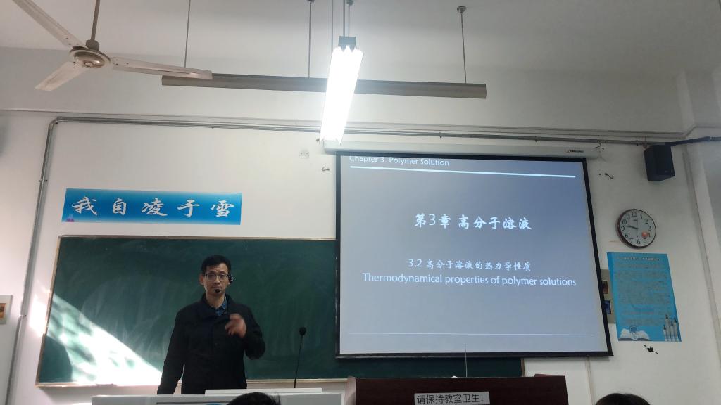 宇海银老师在行知楼2070202教室给2018级材料化学专业本科生上了一节高分子物理公开课。学院部分领导老师前来观摩学习。本次公开课主要讲述了高分子溶液的热力学性质的相关知识点。