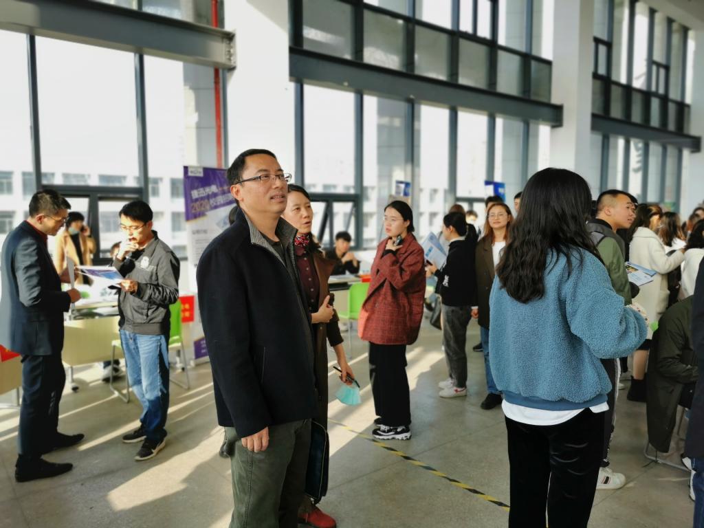 于近日联合了江浙沪皖多家公司和合肥新站区人力资源中心,举办了2020年秋季专场招聘会,为2021届毕业生就业工作加油助力。学院党政班子成员、系主任、辅导员都深入到招聘会现场,同用人单位和毕业生亲切交流,关心招聘岗位和毕业生就业意向情况。