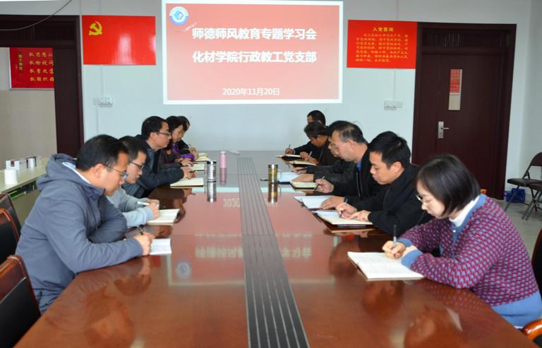 行政教工党支部在707党员活动室开展了师德师风建设专题学习会,全体支部党员参加会议,会议由支部书记王波涛主持。