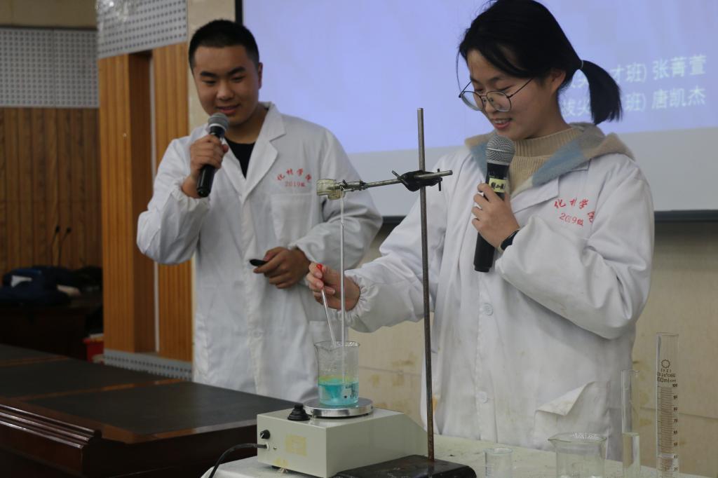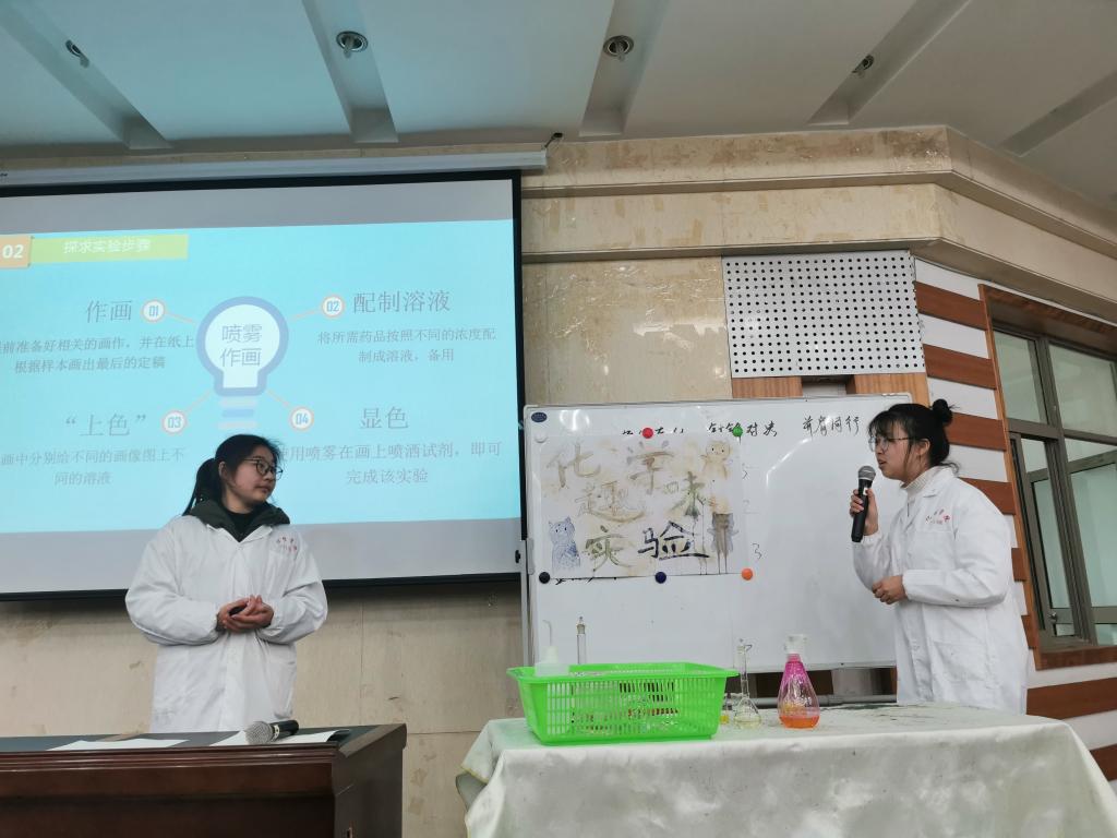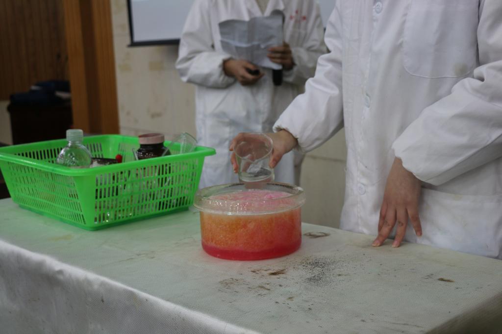 “趣味化材”化学实验技能比赛是我院素质拓展活动的一项精品课程。成功地将化学理论与专业实践有机结合,不仅激发了同学们对化学的兴趣,增强了同学们对知识的运用能力,培养了学生的创新思维,更是以化学作为桥梁,增加了各学院之间的交流,将化学之美表现的淋漓尽致。