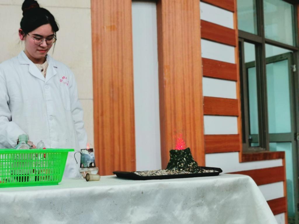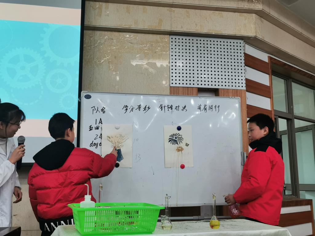 决赛中,各组选手在赛前都进行了充分准备,两人一组,一人进行实验操作,另一人配合进行实验讲解。他们的讲解通俗易懂,实验操作规范流畅,让在场的同学们深深感受到了化学的魅力。许多选手还自行设计实验道具,创设实验情境,充分彰显了此次比赛的核心“趣味”与“创新”。经过评委的细致评判,《喷雾作画》、《火山爆发》荣获一等奖,《有氧运动》、《金兰之交》等三个作品获二等奖,《变色喷泉》等三个作品荣获三等奖。活动最后由大赛总指导老师阙荣辉对本次比赛进行了点评。