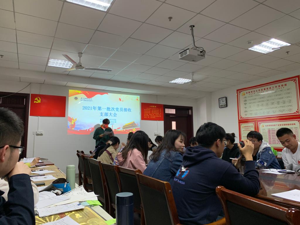 袁周)3月26日下午,材化系本科生党支部在707会议室召开支部大会讨论接收预备党员工作。学院党委副书记李古州出席并做指导讲话,全体支部党员及发展对象参加会议,会议由支部书记王芳主持。