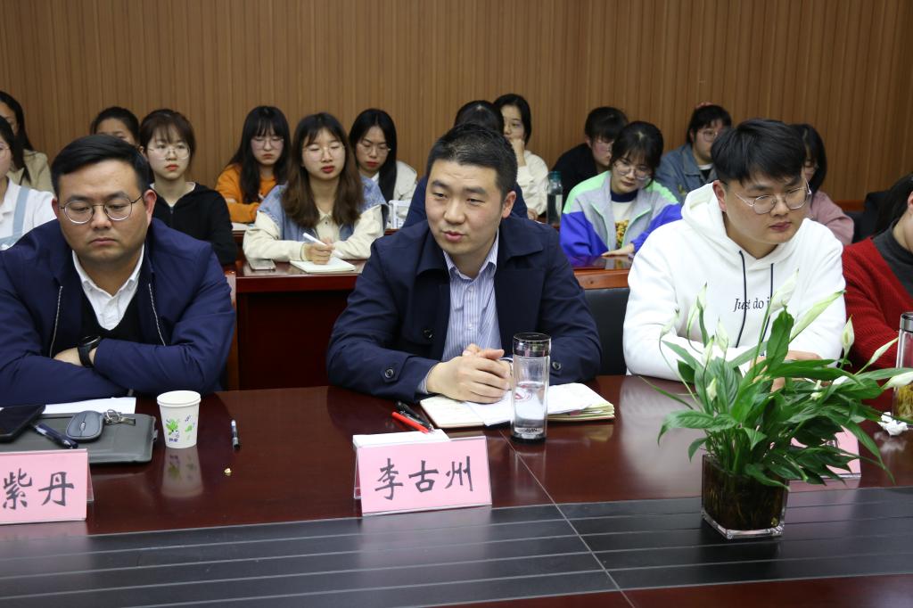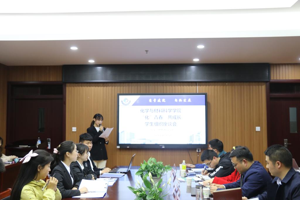 于4月15日晚在礼勤楼702召开“化青春·共成长”学生组织座谈会。学院党委副书记李古州、团委书记陶勇、副书记陈静、段传钦和各学生组织指导老师出席此次座谈会,学院团委、学生会及各协会部长及以上成员参与此次座谈会。