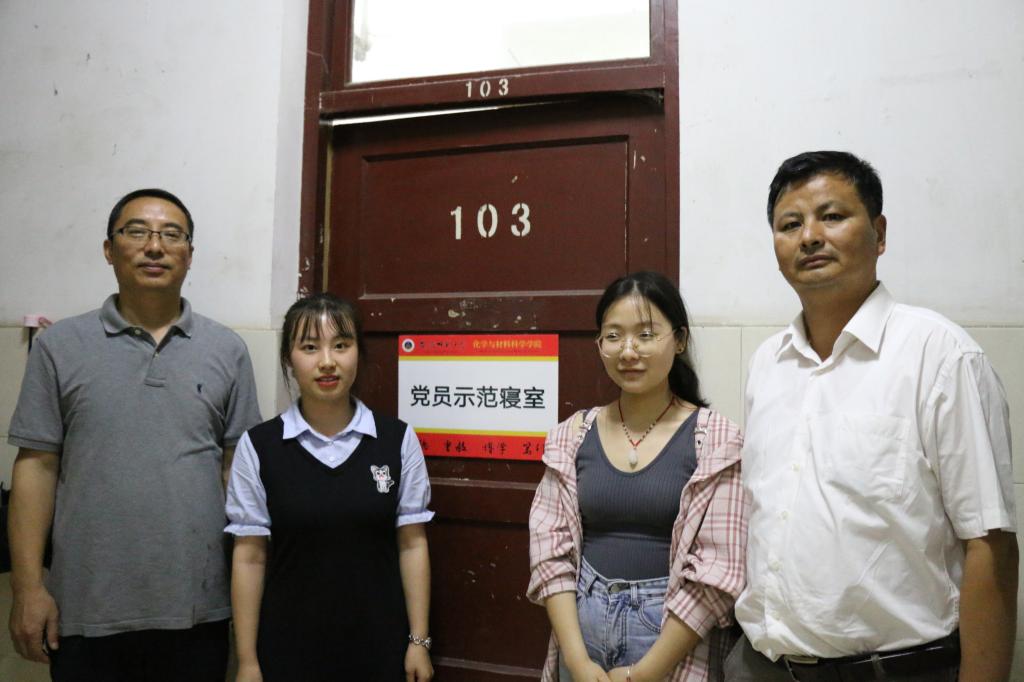 领导老师们深入学生宿舍,为党员寝室挂牌、亮身份,在挂牌过程中强调,党员要在和谐宿舍创建工作中充分发挥先锋模范作用,以实际行动影响和带动其他学生养成良好的行为规范,努力营造干净舒适的学习生活氛围,促进学风建设和学生健康成长。学生党员们也立志严格要求自己,遵守各项规章制度,加强室风建设,彰显化材学子青春风采。