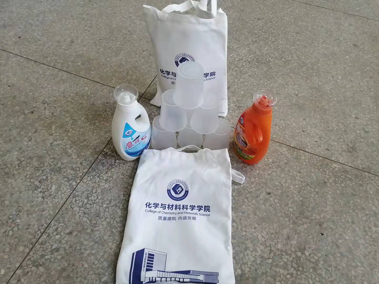 高度重视迎新工作,前期通过召开迎新工作布置会、志愿者培训会、新生导生培训会以及宣传报道工作布置会,细化工作方案,确保迎新工作有计划、有秩序地推进。为体现化材学子积极昂扬的风貌,展示化材学子过硬的专业能力以及运用能力,化材师生发挥特长,将专业能力运用到实际中,精心为2021级新生准备迎新大礼包。学院特别定制的迎新帆布袋中,装有应用化学和材料化学专业学长学姐们精心准备的实训产品,礼包里满载着学院对于新生的诚挚欢迎及衷心祝福。除此之外,学院在迎新处特别设立了实习实训产品展区,有专门的志愿者在现场进行介绍,用行动展示出专业风采,表现出化材学子的专业素养能力以及作为一名师大人的奉献与热情。