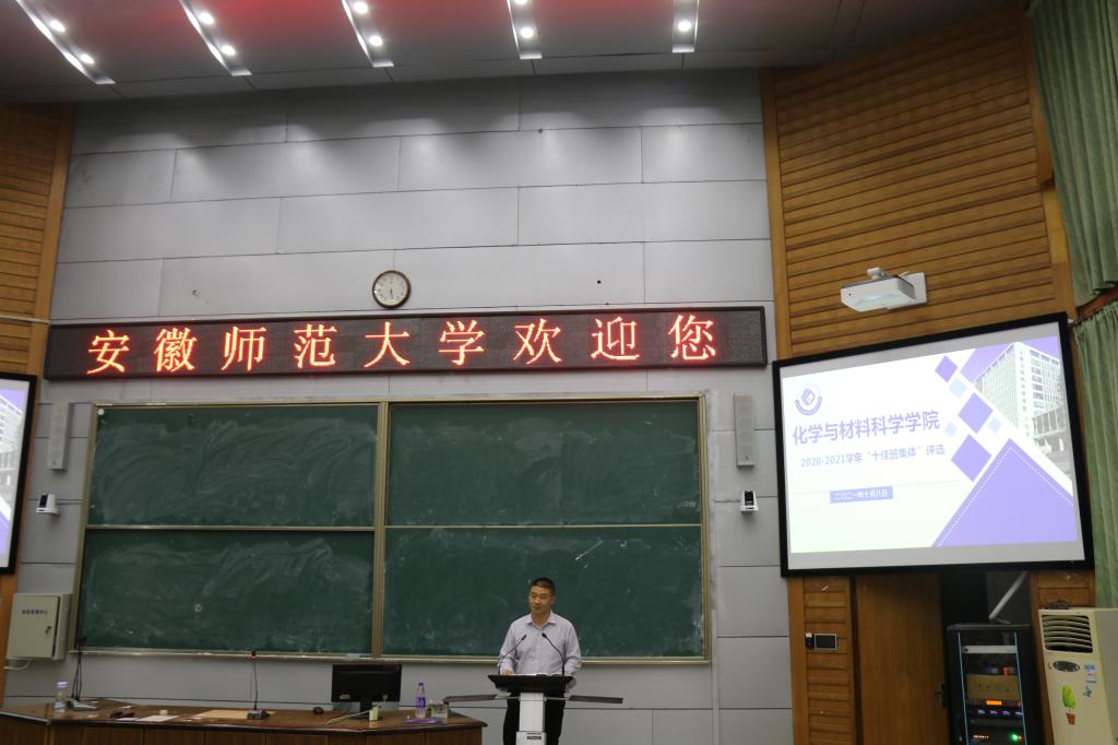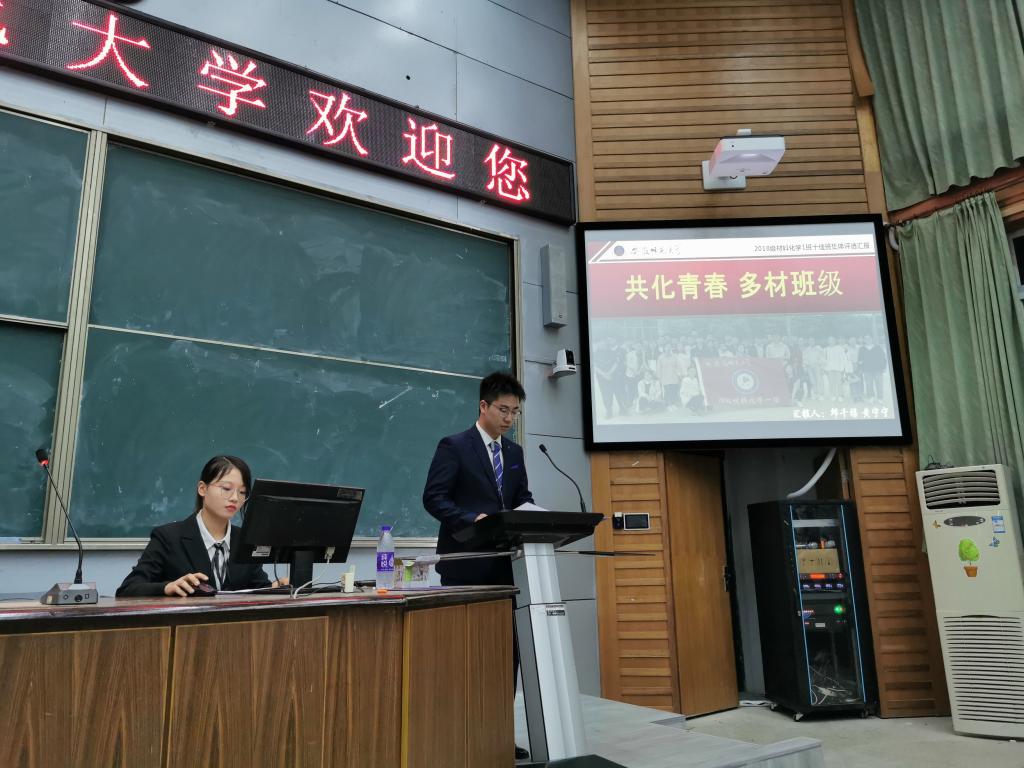 汇报中,各班级结合专业和特色,详细介绍了班级在组织建设、思想引领、学风建设、基础文明等方面的做法与成效。在组织建设方面,各班级建立合理的班级管理制度,广泛听取班级成员的意见,充分发挥班集体的民主性;在思想建设方面,班级定期开展思想政治理论学习,开展青年大学习及特色主题团日活动,在思想引领上体现先进带头作用。在文明建设方面,各班级充分落实学校相关规章制度,共建文明寝室、党员示范寝室。在展现风采的同时,各班级代表用具体实例展示各班良好学风,师范专业自创“教学技能小组”以学风带动班风建设,拔尖人才专业推进全员进实验室开展科学研究,共同展示化材学子独特科研魅力。