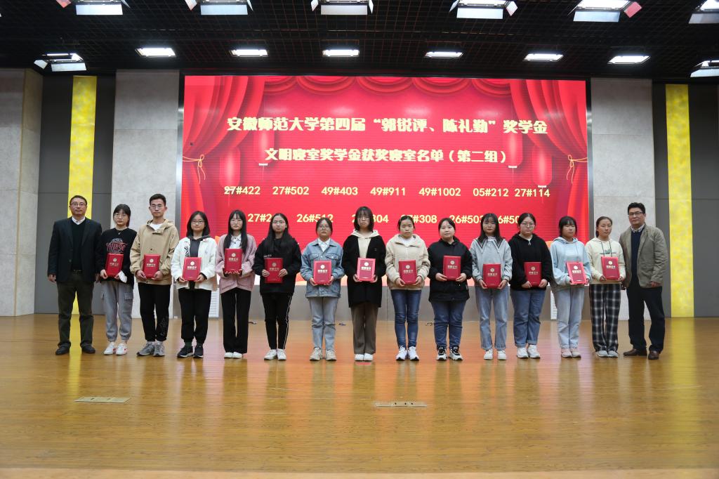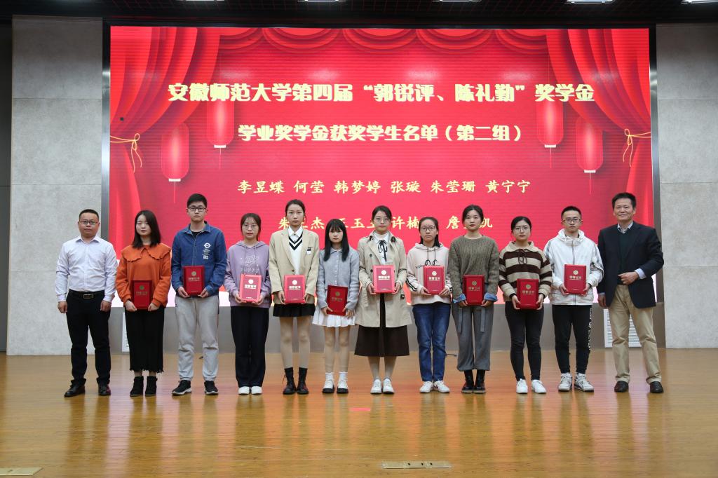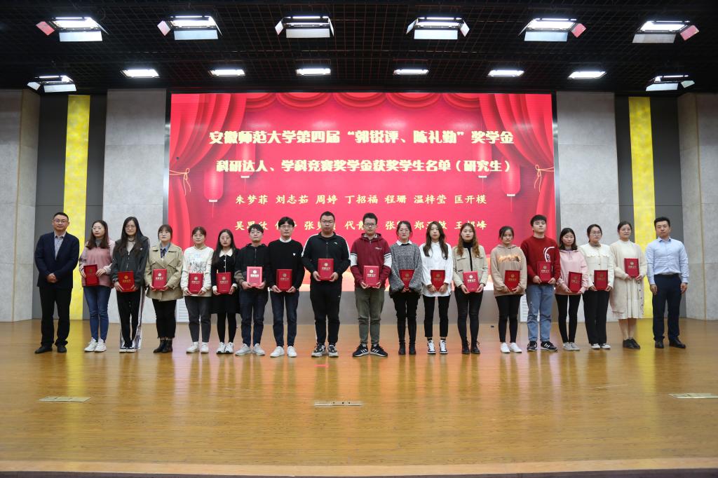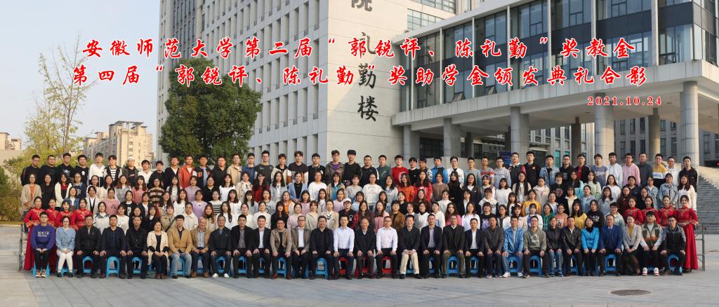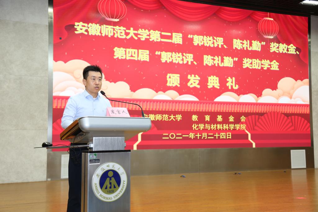 第二届“郭锐评、陈礼勤”奖教金、第四届“郭锐评、陈礼勤”奖助学金的决定》。嘉宾们分6个批次共15组向获奖师生、受助学生颁发奖教金、奖助学金获奖证书。2018级材料化学专业黄宁宁和2019级化学(师范)专业沙凝分别代表获奖、受助同学发言,两位同学对郭锐评女士、陈礼勤博士的无私资助表达了诚挚的敬意,并向学校、学院老师和同学们的关心表达了感谢。两位同学表示将怀揣感恩之心,以更加优异的成绩来回报郭锐评女士、陈礼勤博士及学校学院给予的关心和帮助,并努力将这份大爱精神传承下去,奉献爱心,回馈社会。