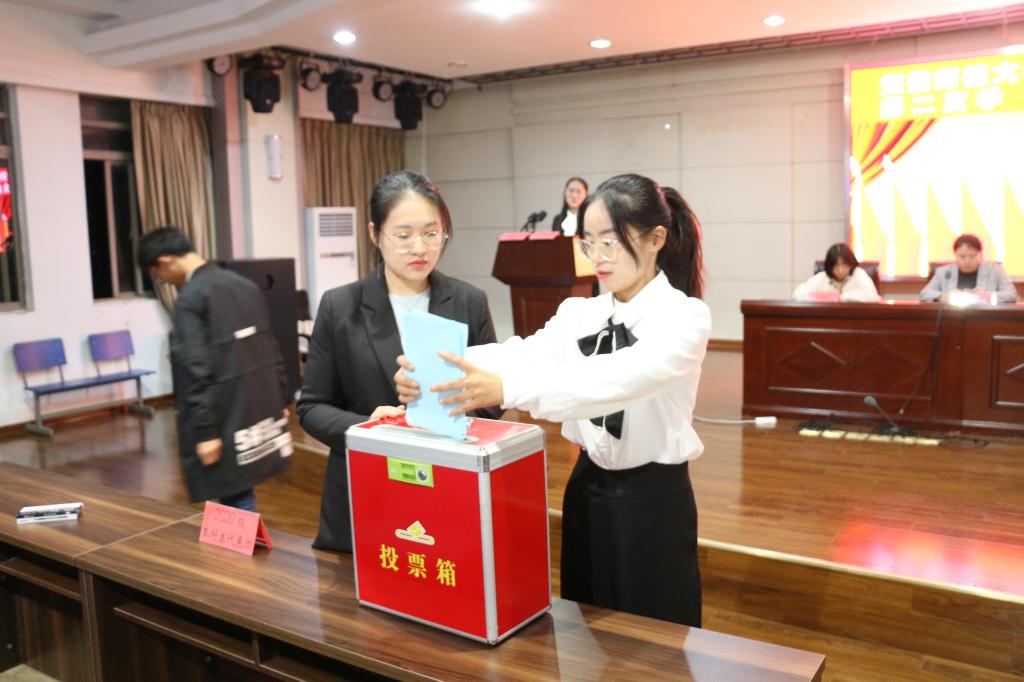 在外国语学院二楼报告厅召开学院第二次学生代表大会、研究生代表大会,学院党委副书记李古州、团委书记陶勇,团委副书记陈静、段传钦,研究生辅导员邱霞和87名学生代表共同参加了此次会议,会议由学院团委副书记、2019级应用化学专业吴泓婧同学主持。
