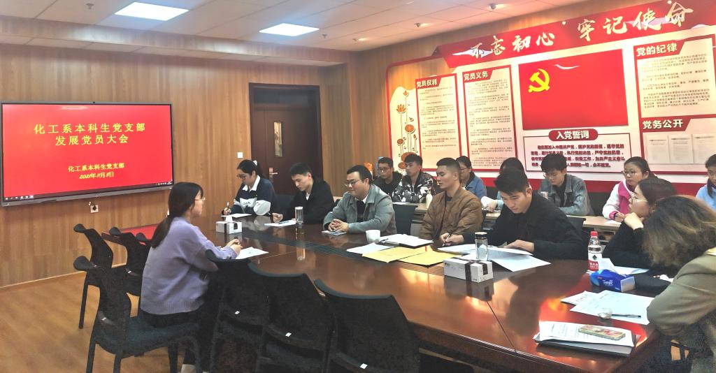本网讯(化工系本科生党支部 陶淑璇)11月5日下午,化工系本科生党支部在礼勤楼707室召开了2021年下半年第三批发展党员及党员转正大会,化工系本科生党支部书记程紫丹老师、2019级化工专业辅导员段传钦老师、2021级辅导员梅冠东老师和支部全体党员、发展对象参加了本次会议。大会讨论接受汪少振等13名同志为中共预备党员,以及预备期满的张晨璐等4名同志如期转正的相关事宜。