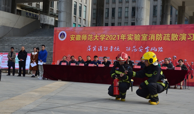 近1000余名师生为演习主体,物电学院、生环学院、地旅学院部分师生代表观摩演习,此外弋江区消防救援大队、高校园区派出所、明德物业、长源消防公司等单位安排人员参加演习。