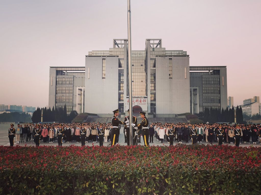 2021级化学师范专业梁峻同学带领大家进行国旗下宣誓,同学们面向国旗、高举右拳,“弘扬师大文化,发扬师大精神,百年传承,今日到我;激荡未来,壮志在我;青春万岁,强国有我”铿锵有力的宣誓词在敬文图书馆广场激荡回肠,点燃了同学们强烈的爱国热情。