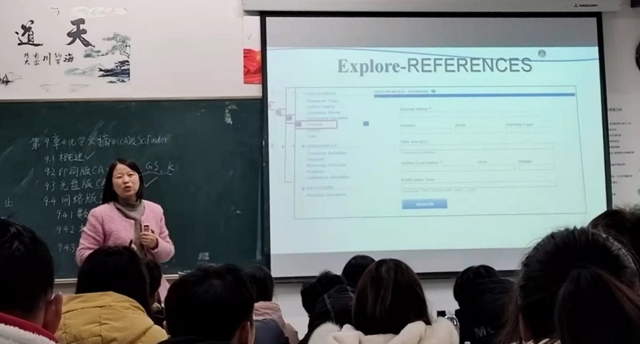 王银玲老师在花津校区2070208教室主讲《化学化工文献信息检索》教学公开课,学院督导组及部分老师前往观摩交流,2020级化学(非师范)班全体学生参加此次公开课。