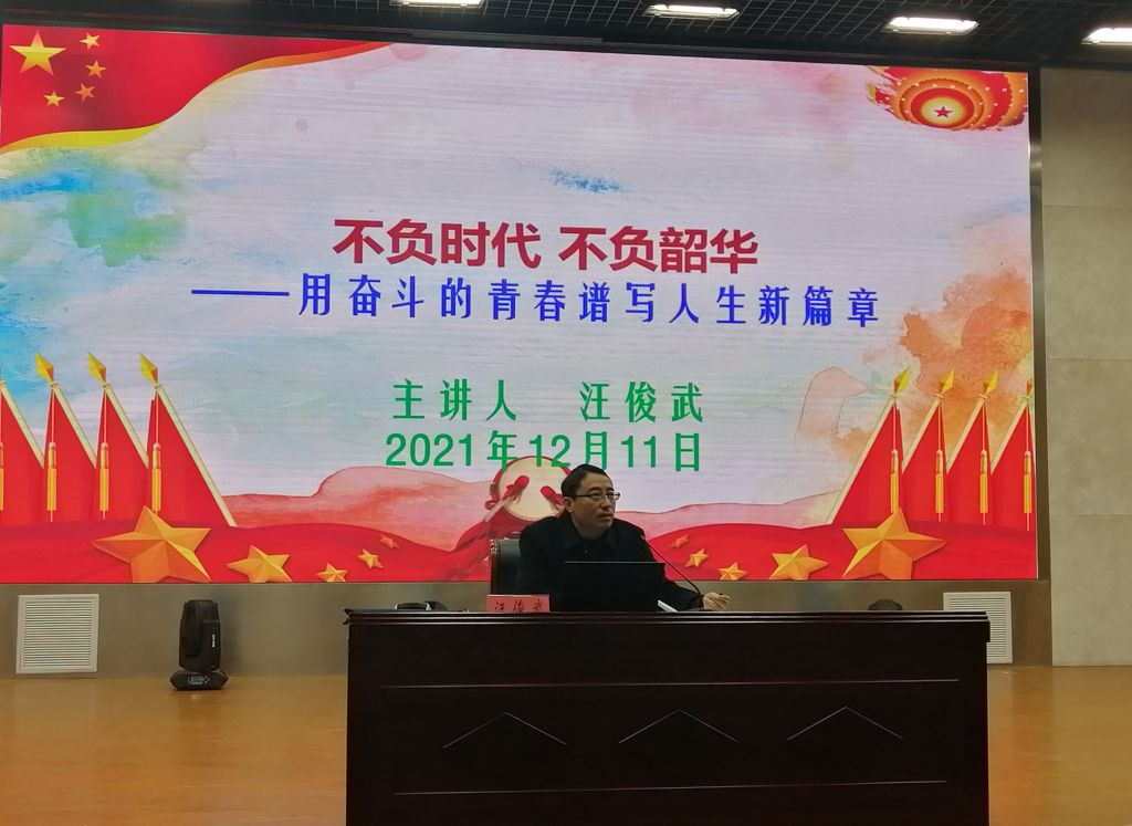 汪俊武向同学们分享自己的大学生活,对于同学们大学里要做哪些有意义的事,给出了自己的建议。他指出,广大青年学生要积极主动,尽快适应大学生活;认可接受,合理规划大学生涯;不忘初心,努力实现人生目标。他强调,青春是用来奋斗的,奋斗的青春最美丽!所有同学都要努力做一个清醒、清楚的主人,不做糊涂、茫然的过客。希望同学们走实、走稳、走好大学的路,走好人生的路!