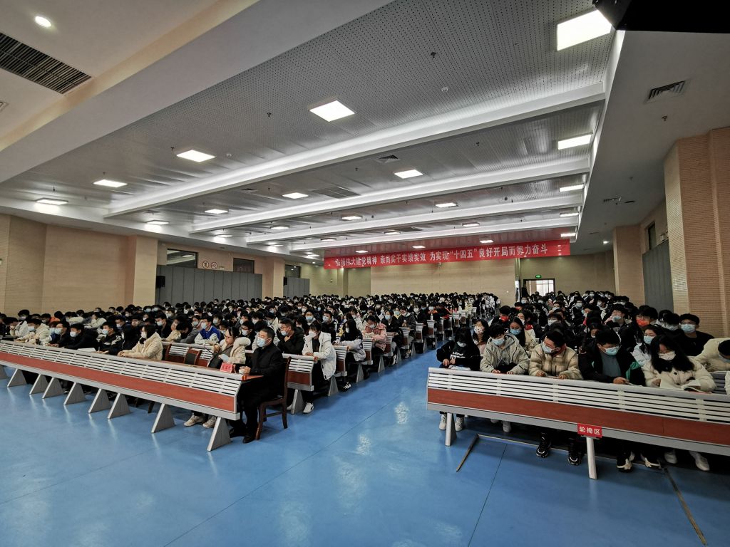 2021级全体学生讲授了一堂题为《不负时代,不负韶华—用奋斗的青春谱写人生新篇章》的互动交流思政课。学院党委副书记李古州、2021级辅导员梅冠东、张薇与学生共同听课。