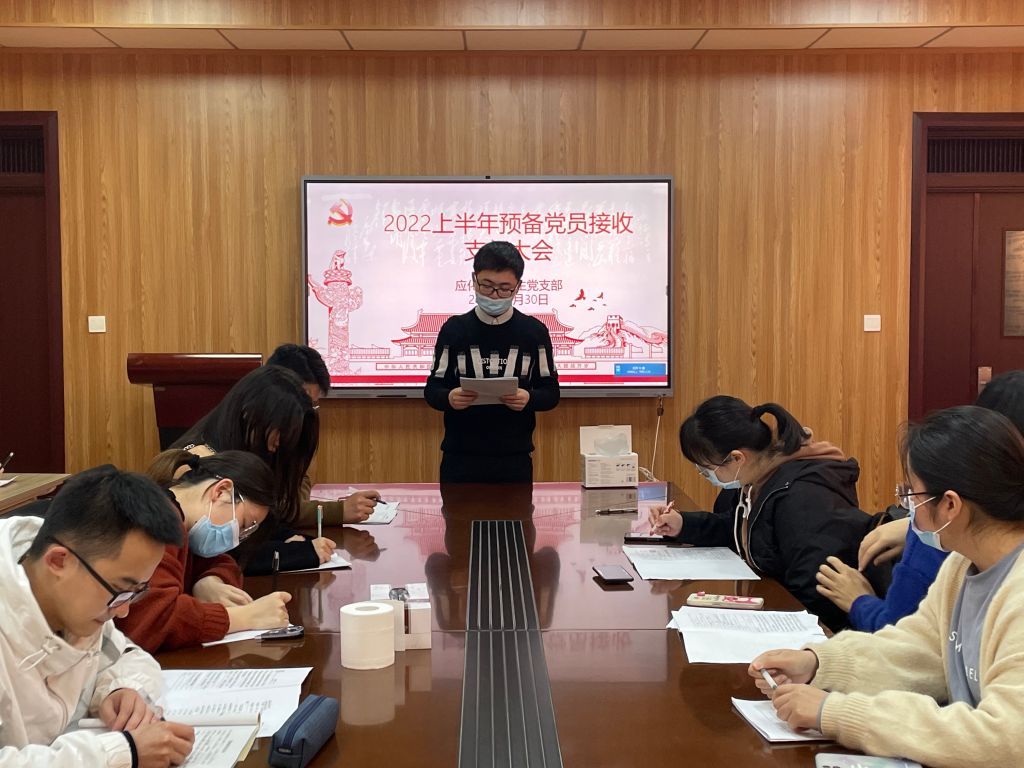 本网讯(应化系本科生党支部 鲁立一)2022年3月30日晚上7点,应化系本科生党支部在礼勤楼707室召开了2022上半年预备党员接收支部大会。应化系本科生党支部全体党员、预备党员、发展对象均按时参会,大会由党支部书记陶勇主持。