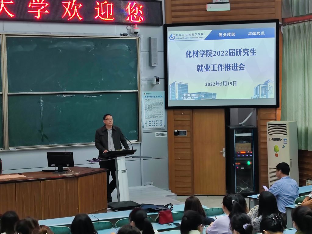 为全面加强2022届毕业生就业指导工作,切实提升毕业生就业意识,5月19日,结合学院实际,召开了2022届研究生就业主题班会,院党委书记汪俊武、副院长周双六、辅导员苏桂琴级2022届全体研究生参加会议。会上,周双六以提升毕业生就业意识为出发点,对当前毕业生就业情况进行了详细分析,鼓励毕业生们提高就业积极性,坚定就业信心,明确就业路径。汪俊武指出,当前就业形势严峻,就业是个人生存发展的需求,是对家庭和父母的负责,更是国家发展的需求,希望所有同学要树立正确的就业观念,提升过硬的就业能力,做好充足的就业准备,寻找合适的就业机会。