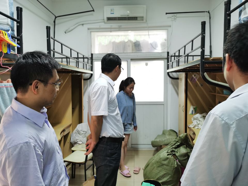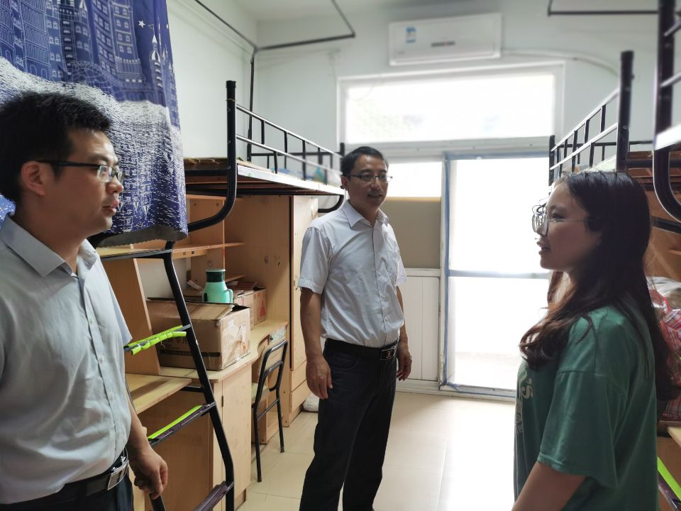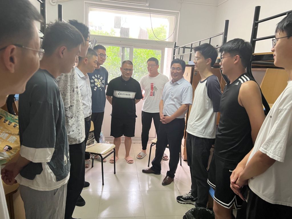 毕业生离校期间,学院领导班子、毕业班辅导员坚守岗位,认真做好为期半个月的校园夜间值班工作,确保毕业生离校期间安全稳定。6月22日,学院领导班子成员、系主任、毕业班辅导员深入毕业班宿舍进行走访。院党委书记汪俊武、院长高峰与毕业生亲切交谈,向即将迈进新的人生阶段的毕业生表达诚挚的祝贺,并就毕业生的就业情况进行了解,给予相应的建议。对于还在求职的毕业生,鼓励大家先就业再择业,增加求职机会,老师们耐心介绍了相关企业人才引进政策与人才待遇,希望同学们能够扩大就业选择,发挥自己的优势。最后,面对即将离校的同学们,老师们叮嘱他们注意交通安全,回家不忘报平安。