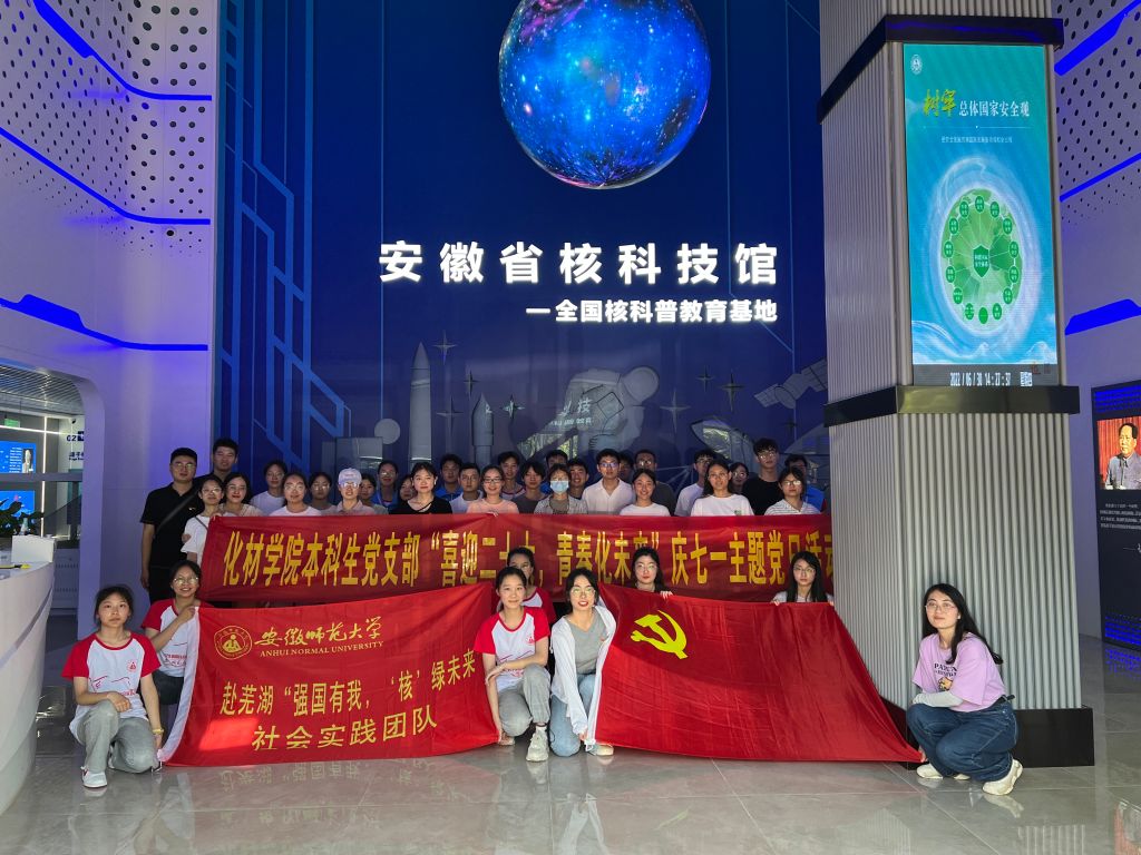 党委副书记李古州带领化学系本科生第一党支部、化学系本科生第二党支部、材化系本科生党支部、化工系本科生党支部党员前往安徽省核科技馆开展“喜迎二十大 青春化未来”主题党日活动,慰问在核科技馆开展“强国有我·‘核’绿未来”科普宣讲的社会实践团队成员。
