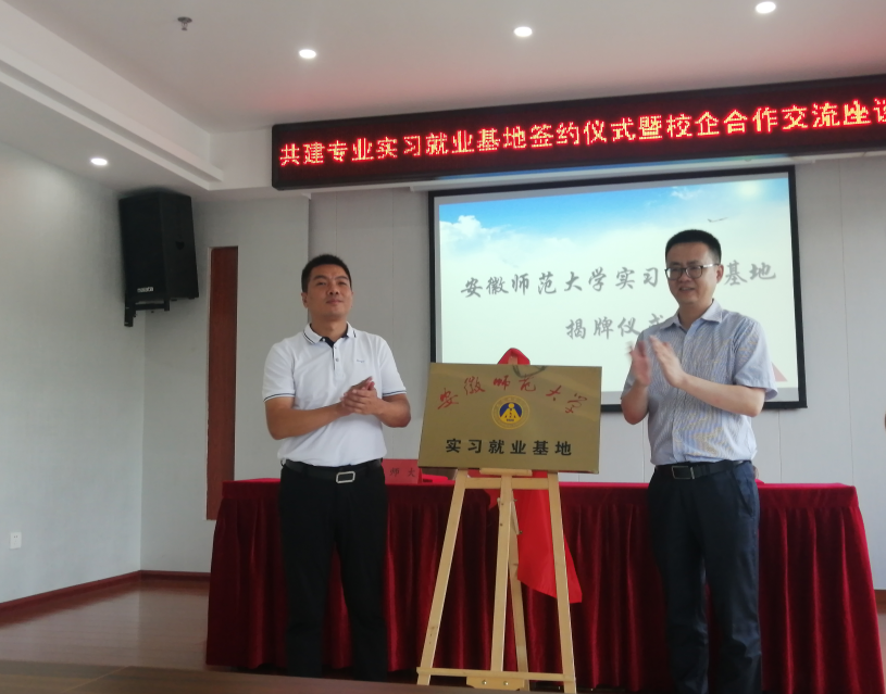 实习就业基地授牌仪式暨校企合作座谈会在安徽蓝格利通新材应用股份有限公司举行。熊宇杰与蓝格利通董事长章健共同为实习就业基地揭牌,孙村镇党委书记何定柱到会见证。仪式上,大家观看包子漫画